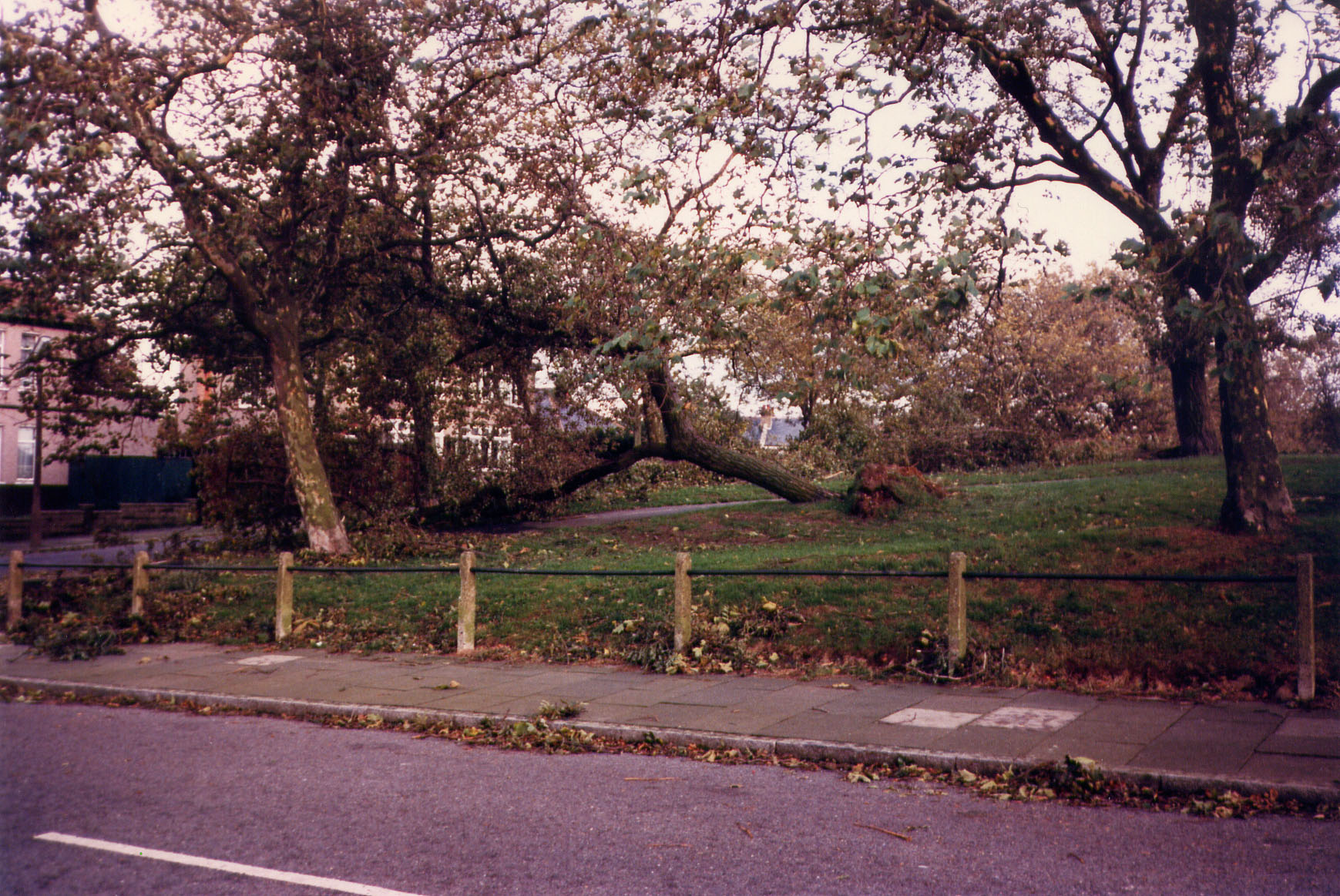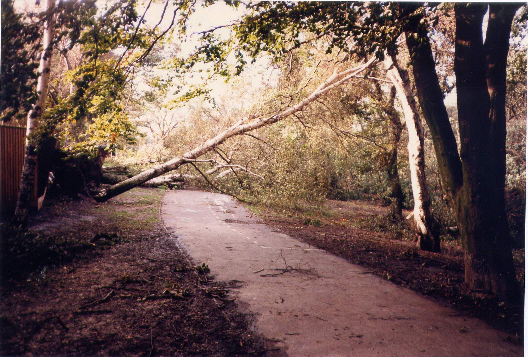 On the night of 15th to 16th October 1987 an exceptionally strong weather system hit southern England and northern France. A very deep area of low pressure developed in the Bay of Biscay and began tracking north east deepening all the time with dramatic increases in temperature across the storms front. By the time people went to bed on the night of the 15th October no mention had been made of the severe nature of the approaching storm on national television and radio broadcasts. BBC Weatherman Michael Fish famously dismissed one viewers concerns outright. However severe weather warnings had been issued to the emergency authorities including the London Fire Brigade. A later warning was then issued to the Ministry of Defence warning that the consequences of the storm might be so severe that the civil authorities may need to call on the military for assistance. The storm made landfall in Cornwall and continued its north easterly path with winds veering from southerly to south westerly. The strongest gusts of 120 miles per hour were recorded in Sussex, Kent and Essex. The following morning BBC Television centre could not operate due to power failure and BBC Breakfast Time was broadcast from a single camera emergency studio in central London, reinforcing the feeling of a national emergency. Unfortunately most of the south east would not have seen this broadcast as hundreds of thousands of people were themselves without power and in some places remained this way for weeks. Public transport in London had failed (nothing unusual in that) and people were advised against going to work.